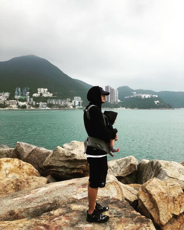 余文乐抱儿子看海 “很网店”
