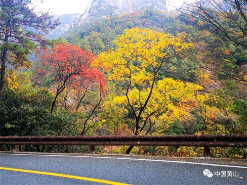 深秋下的黄山温泉景区色彩缤纷,景色绚烂。枫红橙黄、深绿浅绿的色彩层层叠叠地铺满茂林间,进山的柏油路也半遮半掩地藏在这漫山的秋色里,增添了几份闲适的诗意。让我们一起跟随着景区通讯员蔡季安的镜头,一起来欣赏下绚烂的黄山温泉秋色吧!