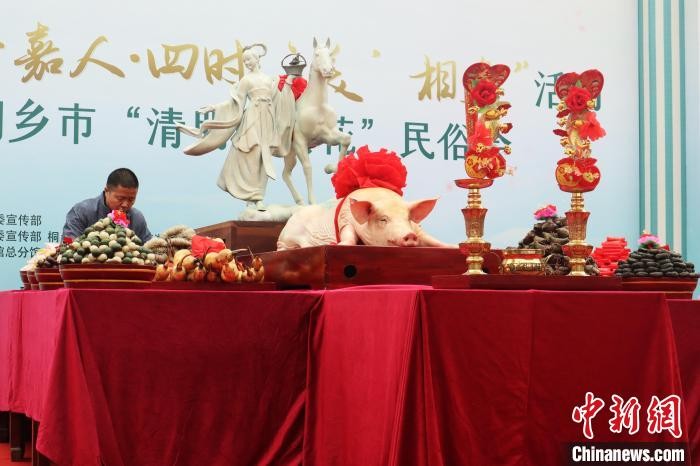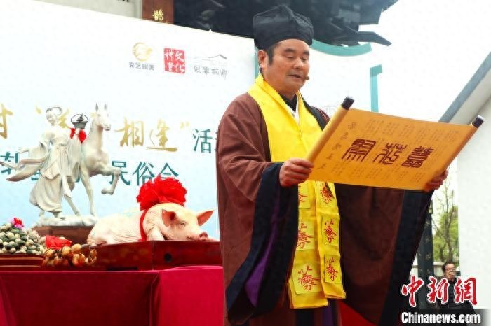 3月29日,浙江省桐乡市河山镇八泉村,村民代表主持“蚕花娘娘”祭典。据悉,该地栽桑、养蚕、缫丝、织绸历史达4700余年,孕育了独特桑蚕文化。当日,祈求风调雨顺、蚕花茂盛的第九届桐乡市“清明轧蚕花”民俗会如期而至,让民众“沉浸式”感受蚕乡魅力。黄彦君 摄