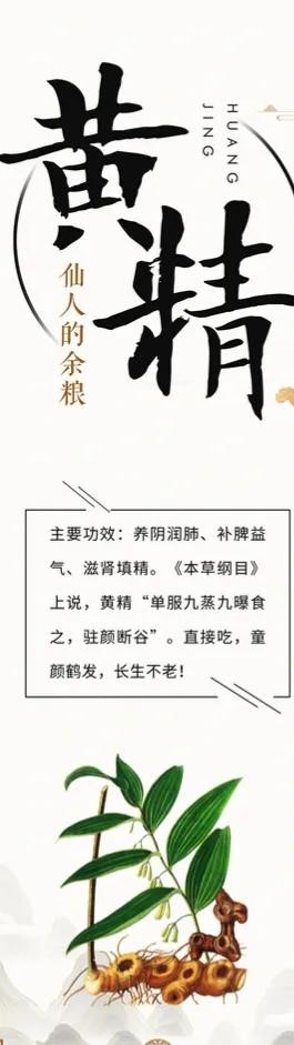 《作用功效》黄精具有补气养阴、健脾、润肺、益肾的功效。