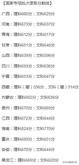 三、清华大学在各省国家专项批次取分数线