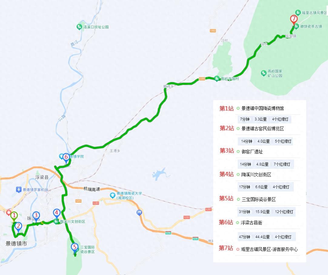 一条线逛7个网红景点 景德镇旅游线路图 交通图
