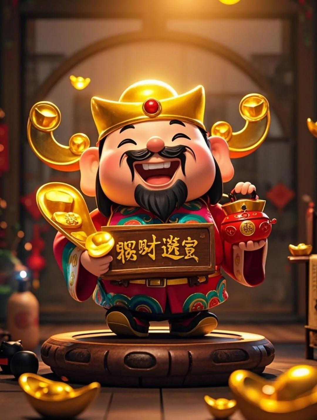 壁纸|五路财神齐聚首,金银财宝满屋走!愿你财运亨通,幸福无忧