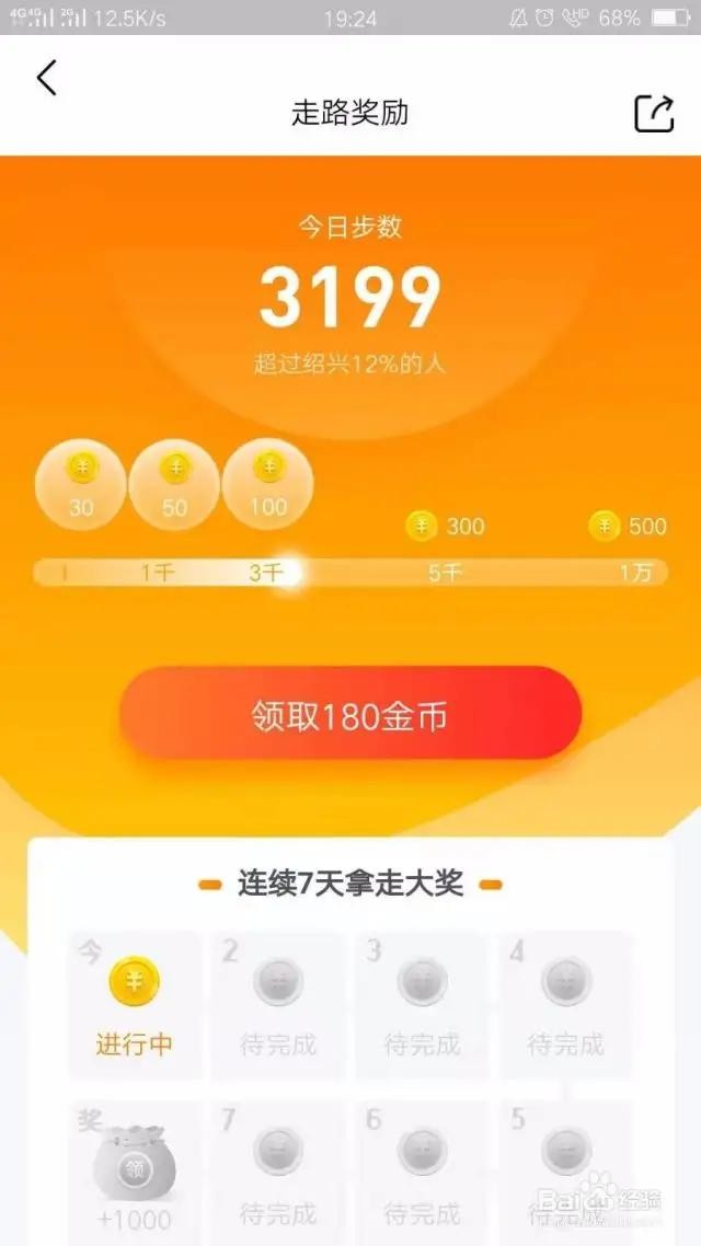 2、走路赚金币,分五个阶段步数,1—1千—3千—5千—1万,走得越多获得的金币越多