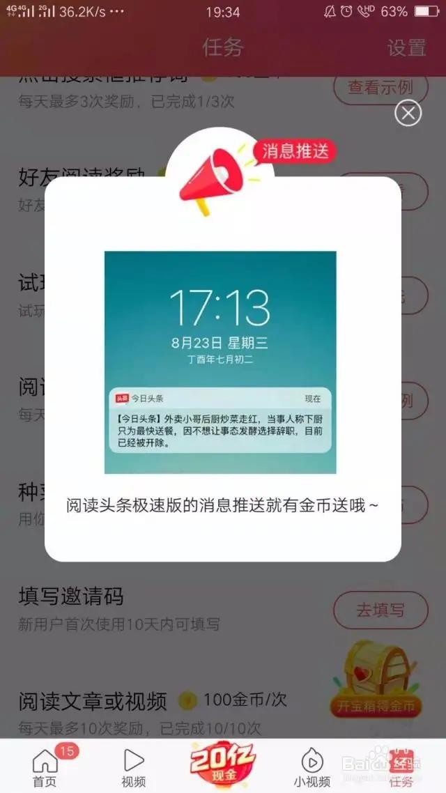 5、点击今日头条推荐的头条新闻,每条100金币,上不封顶