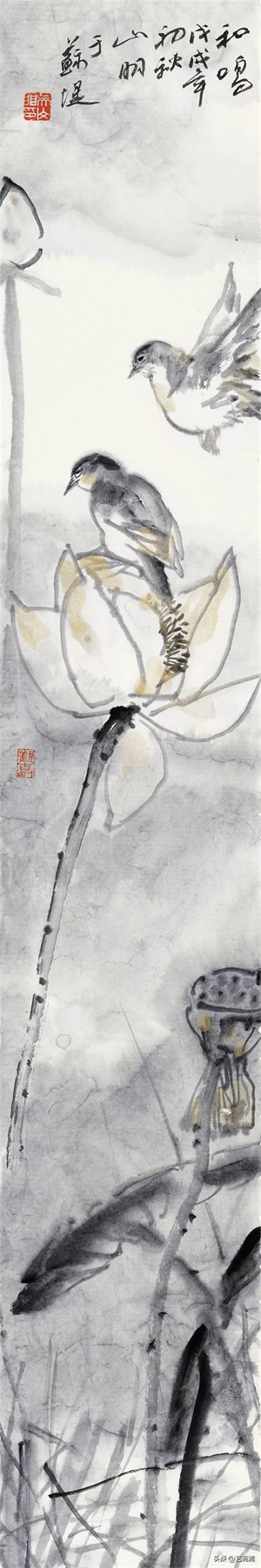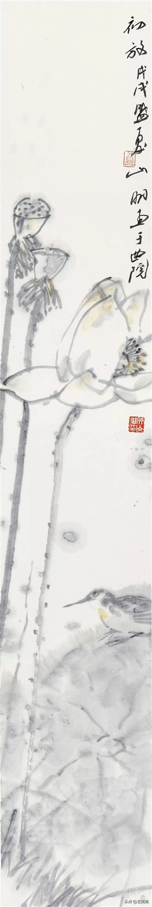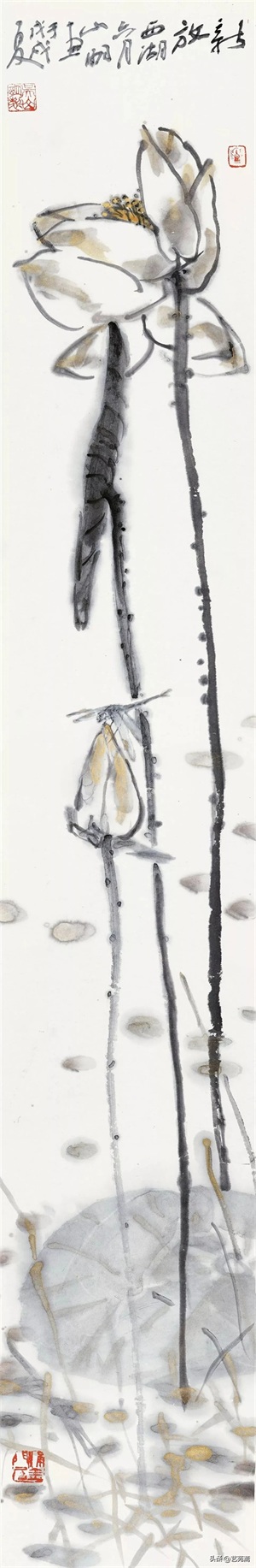 现当代著名画家吴山明笔下的荷花,清新俊逸,别具一格