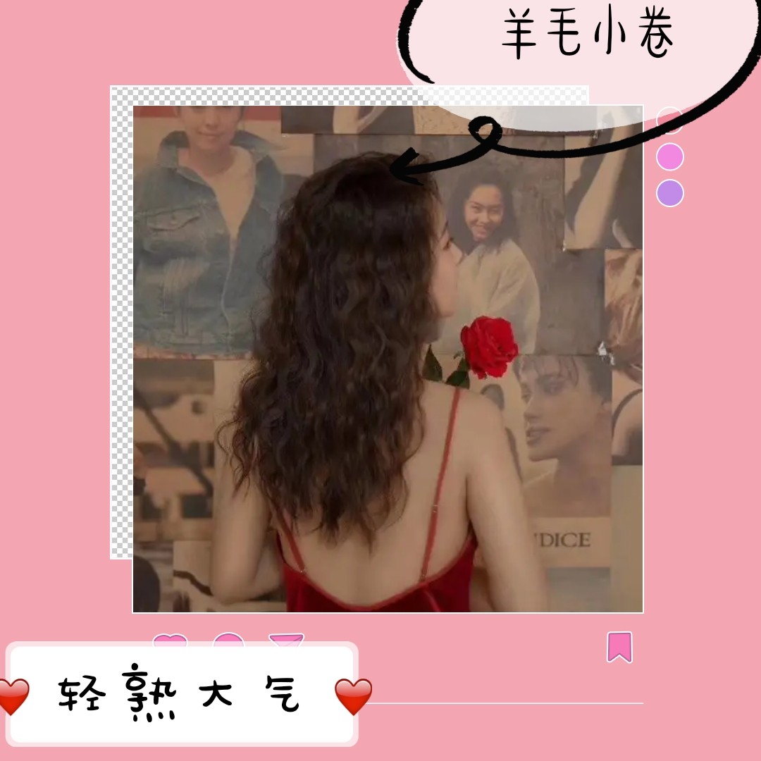 羊毛卷是脸型不流畅仙女们的救星,再加上一款适合自己的女神刘海,让刘海宽度可以遮住太阳穴的凹陷,强调漂亮的下颚线。