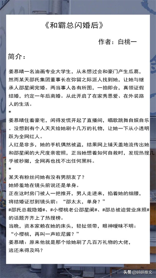 3.《和霸总闪婚后》 作者: 白桃一