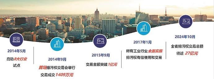 在精准高效的交易服务体系成型后,活跃的排污权交易二级市场逐步形成。截至2024年10月底,全省累计7200多家企业参与排污权交易,总成交2万多笔,总成交金额近27亿元。其中,二级市场占比67%,居全国前列。