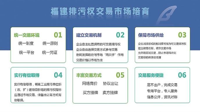 作为指定的排污权交易平台,海峡股权交易中心为全省排污权交易提供场所、设施、信息等服务,并履行交易见证职能。“从系统健全化、流程自动化、交易方式多样化等方面,海峡股权交易中心逐步完善排污权交易平台功能,为企业提供更为便捷化的服务,助力市场活跃。”海峡股权交易中心排污权负责人林婷琼说。