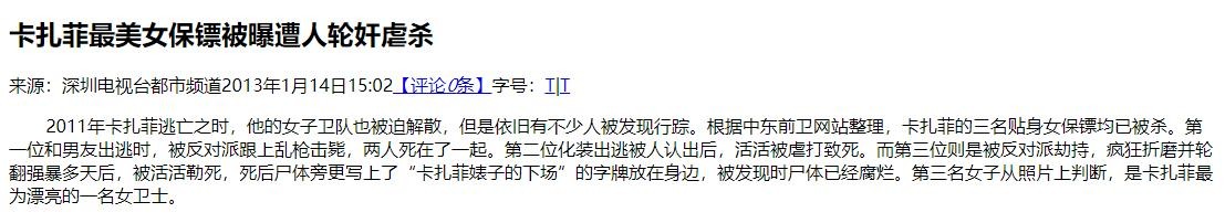 中国新闻2013年1月8日《卡扎菲美女卫队成员被捕遭折磨而死》