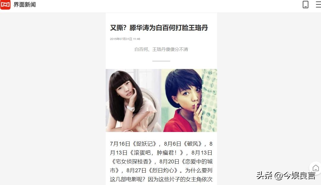 又撕?滕华涛为白百何打脸王珞丹.界面新闻.2015-07-31