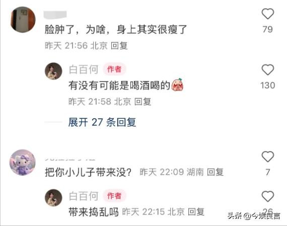 但她学会了用幽默化解争议:"脸肿?可能是喝酒喝的"。