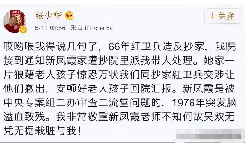 可没过多久,又有老戏骨出来发声,为张少华“平反”,将整个事件变得更加扑朔迷离。