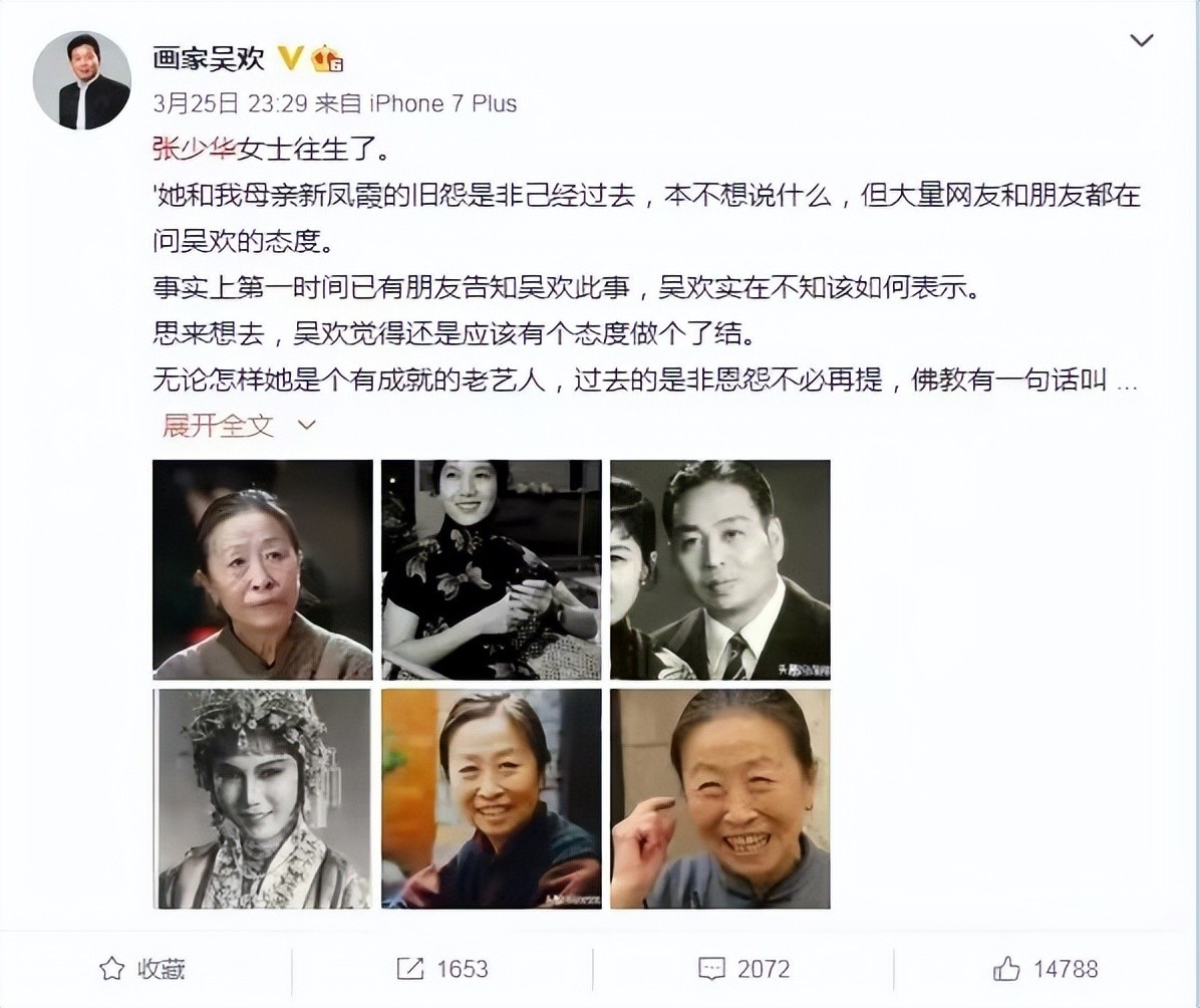 吴欢纪念母亲90岁冥寿,发文质问张少华