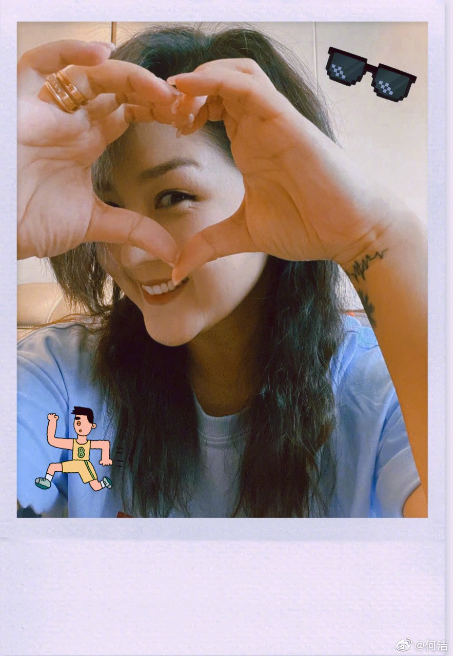 7月31日,何洁在社交平台晒出一组比心照,为我国奥运健儿加油鼓劲,并附文:“这几天的比赛都太燃了!在各种比赛中见识到了我们健儿的奥运精神!无关输赢,尽力而为;你们真的是我们永远的骄傲!所以在这奥运加油时刻,我为奥运健儿比心!加油!期待你们凯旋! ”照片中的何洁心情大好,摆出各种比心姿势,脸型圆润可爱,还俏皮为自己p图“夺冠”“yyds”!