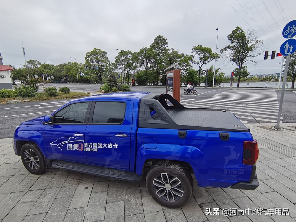 蓝色江铃域虎9改装美式卷帘后箱盖