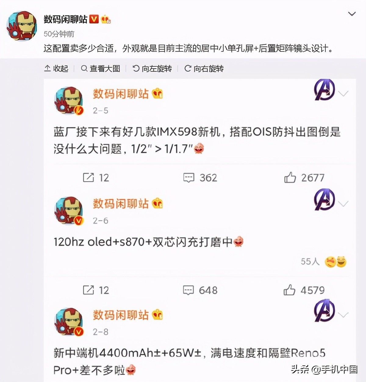 相机方面,该博主爆料称,接下来蓝厂的好几款新机都将搭载IMX598传感器,搭配OIS防抖,“出图没什么大问题”。手机配备了120Hz OLED显示屏,采用当下主流的居中小单孔屏设计,后置矩阵摄像头。新机搭载了高通刚刚推出不久的骁龙870移动平台,双电芯闪充正在打磨中...
