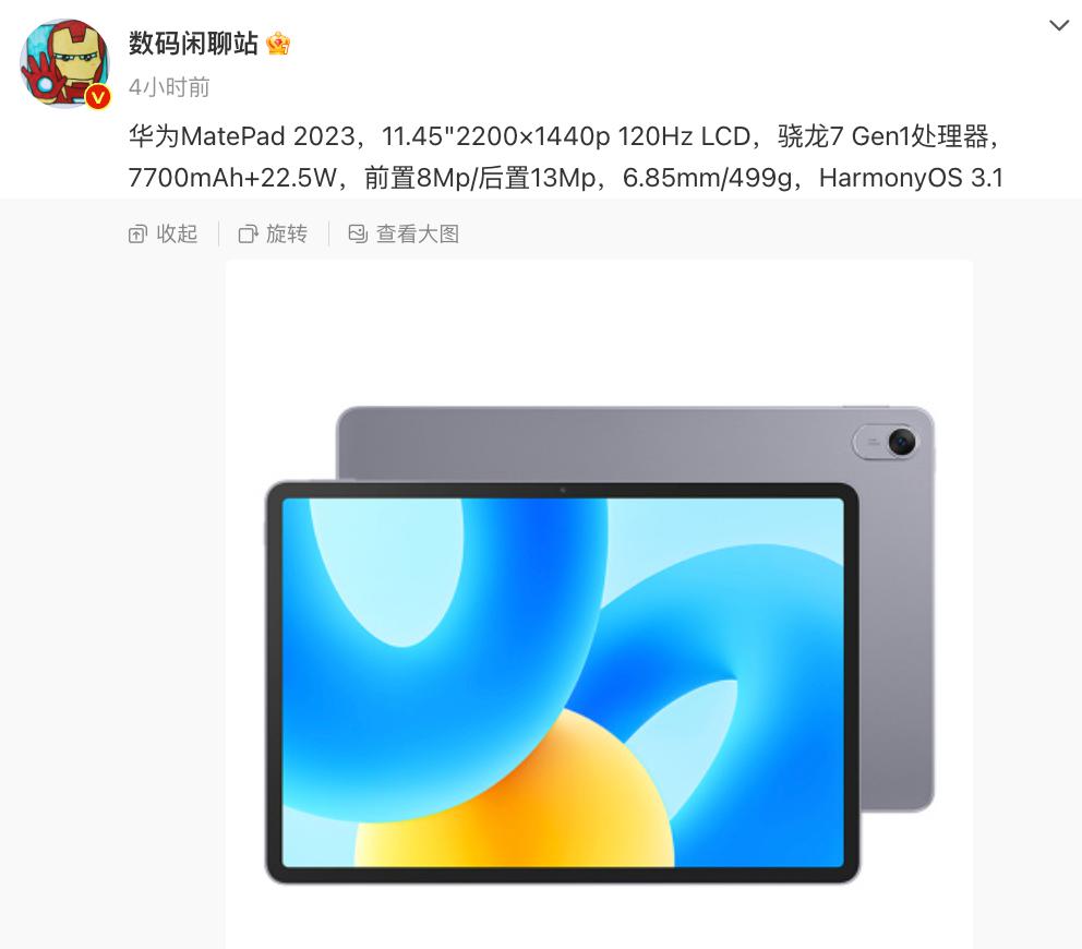 今天,博主 @数码闲聊站 的最新爆料也显示了可能会到来的华为 MatePad 2023 的具体参数规格。
