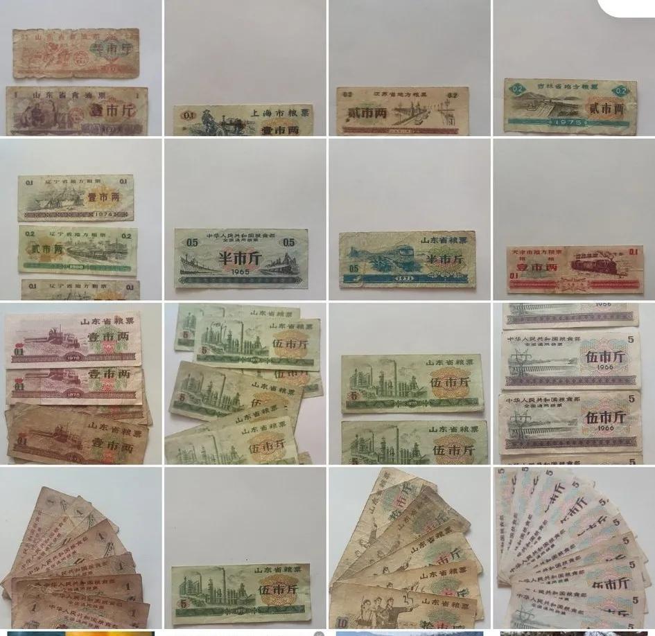 粮票分军用粮票和商(民)用粮票。面额大到万斤,小到半两。