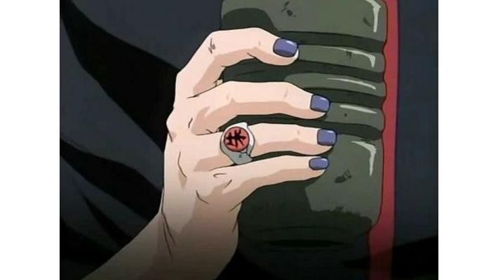 晓组织区别于其他团队组织,不仅仅是战斗力上的差距,还有外表和目的上的与众不同。晓组织的成员都穿着统一的红云黑袍,戴着斗笠,佩戴着统一分配的戒指,还有各色指甲油。除了戒指之外,剩下的估计是佩恩喜好的风格吧。但是唯独这个戒指存在的意义非凡。
