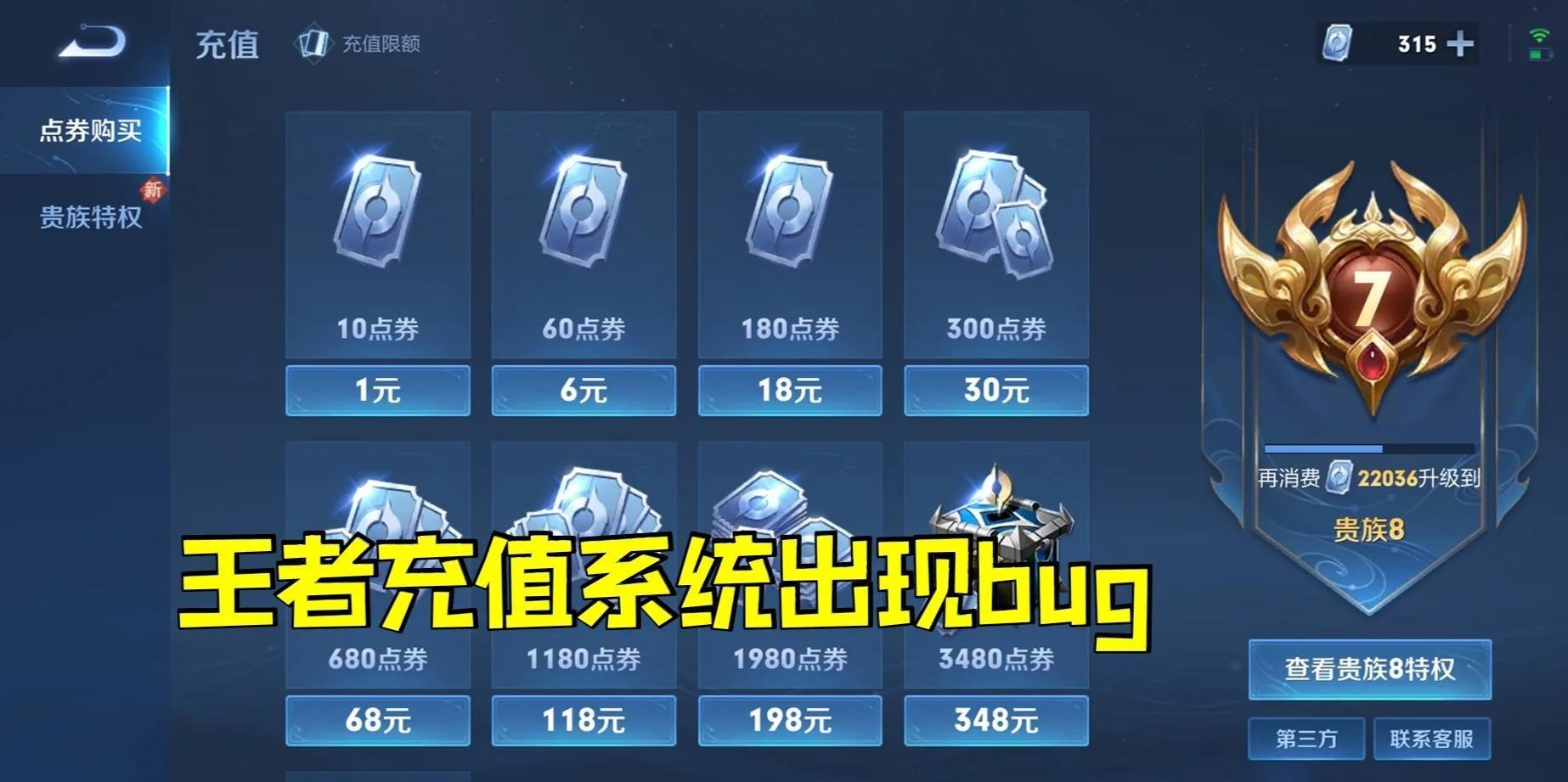 这一次的BUG,应该是王者荣耀充值系统首次出现的BUG,还记得有玩家调侃腾讯,游戏任何地方都会出现BUG,唯独充值系统堪比国防,怎么也不可能出现BUG漏洞之类的,而昨晚王者荣耀充值系统出现的BUG对于官方来说,也没有任何损失,毕竟玩家的点卷少了,而不是点卷变多了。