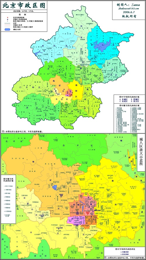 北京市各区行政区划图: