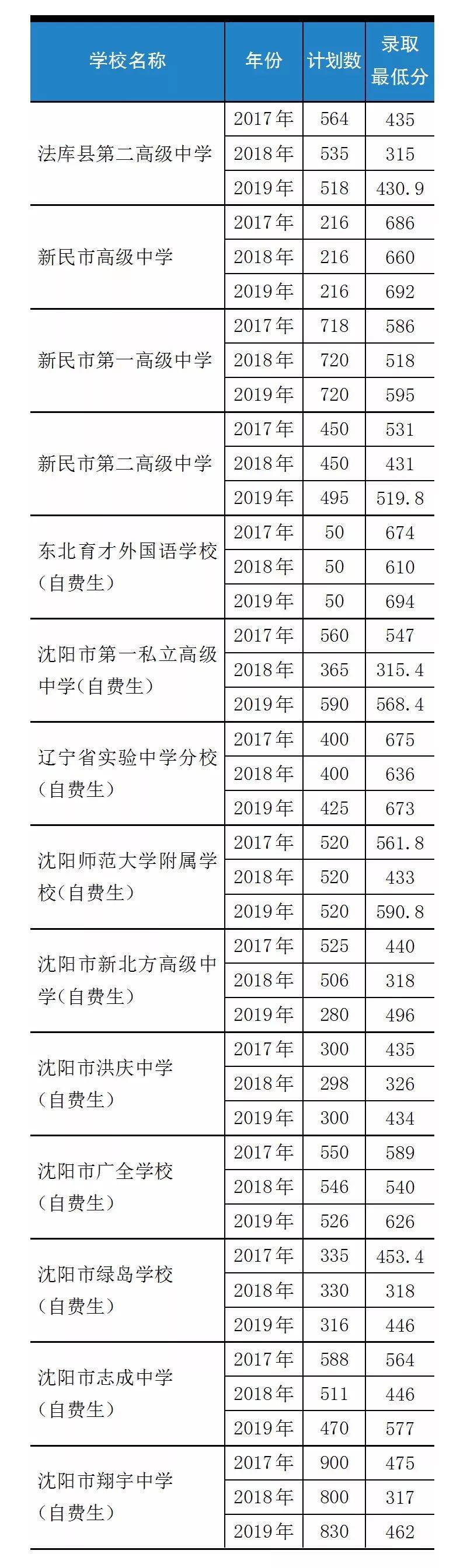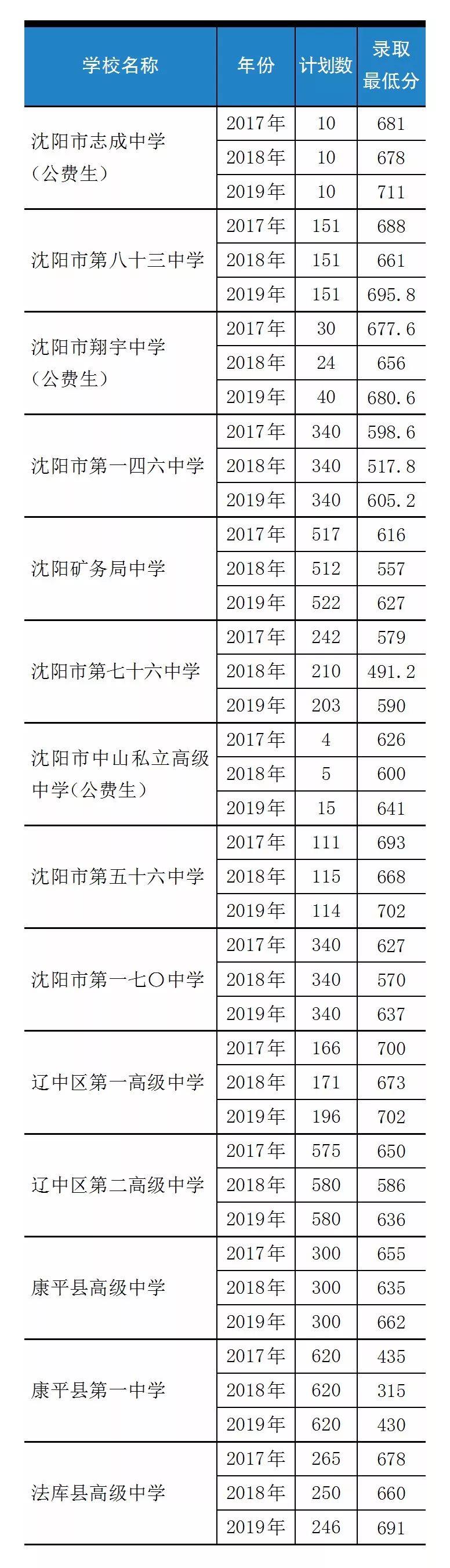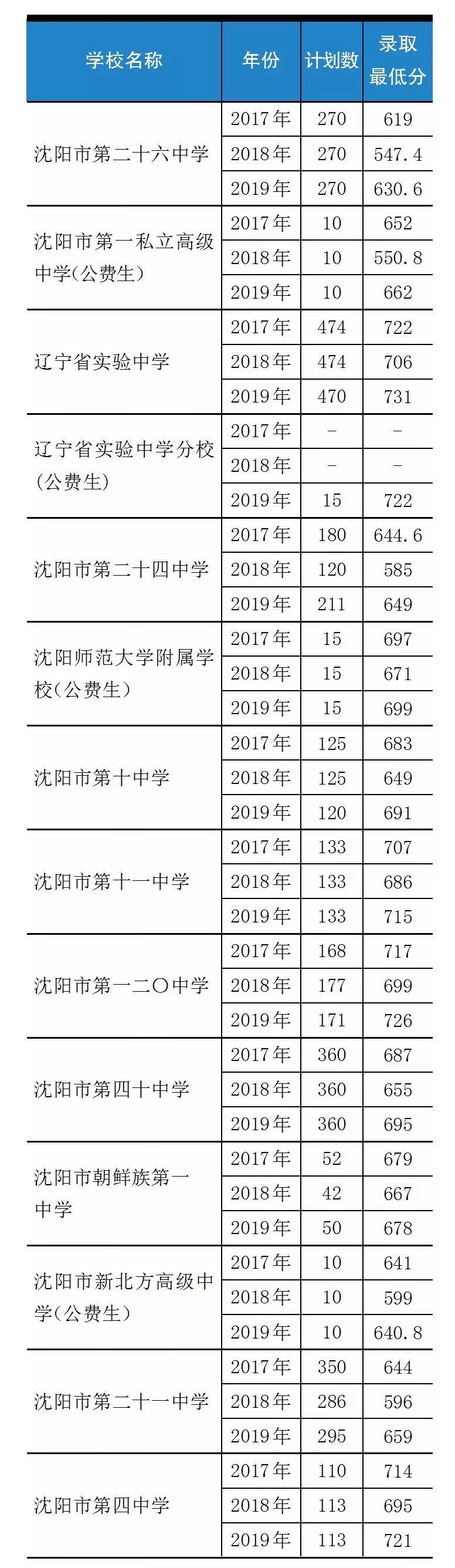 为帮助2020届初三考生、家长更好地了解沈阳市中招录取情况,现将2017~2019年第一、三批次学校招生计划数和录取最低分进行汇总。三年录取志愿序号、数语外三科分数详见2019年《招生考试通讯》中考版第9期。