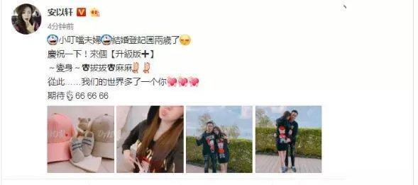 关于宝宝的性别及小名“66”的由来,网友从安以轩配图两人穿着某品牌的特制版衣服庆祝两人两周年并宣告怀孕喜讯,衣服上面正印着猪小弟的图画,这也暗示着两人将具有一个猪弟弟,同时也在文末说“期待,66”。