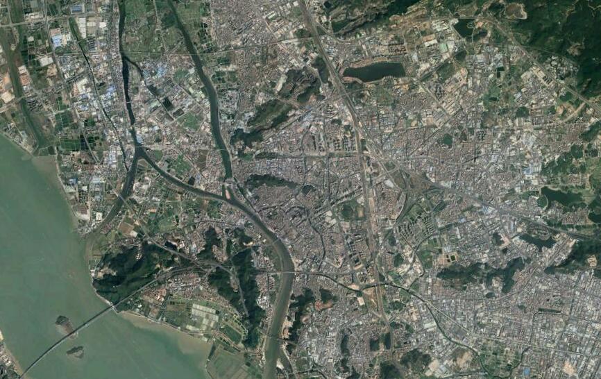 卫星上看广东东莞虎门镇:全国十强镇之一,具有很高知名度