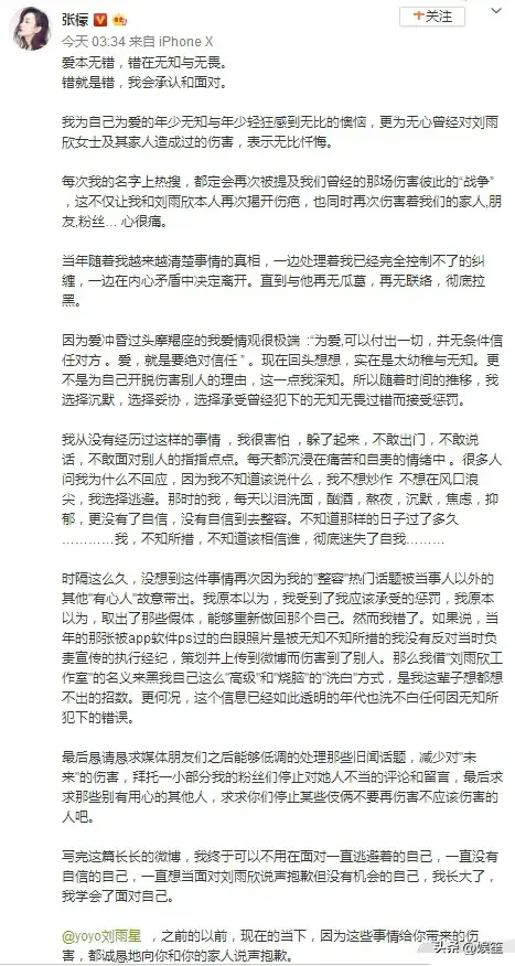 本来张檬是不打算道歉的,还发了一张翻白眼的照片反击舆论,后刘雨欣透露自己是军婚实情,破坏军人家庭是要被处罚的,之后张檬向刘雨欣道歉,刘雨欣原谅。