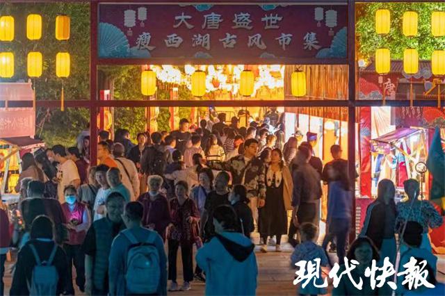 现代快报讯(通讯员 时兴辉 记者 顾潇)" 铁树银花 ",灿若星辰;盛唐鼓舞,翩若惊鸿;唐风市集,感受 " 盛唐 " 热闹与繁华 ……5 月 12 日晚,瘦西湖 " 二分明月忆扬州 " 大型沉浸式夜游又增添新亮点——盛世大唐 · 瘦西湖唐风市集正式开市。