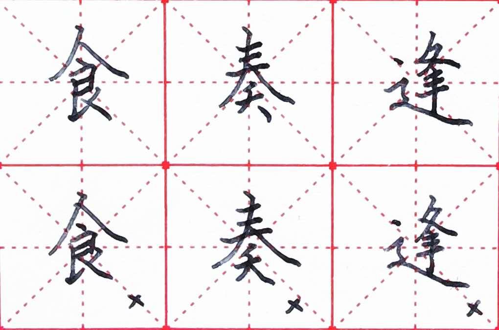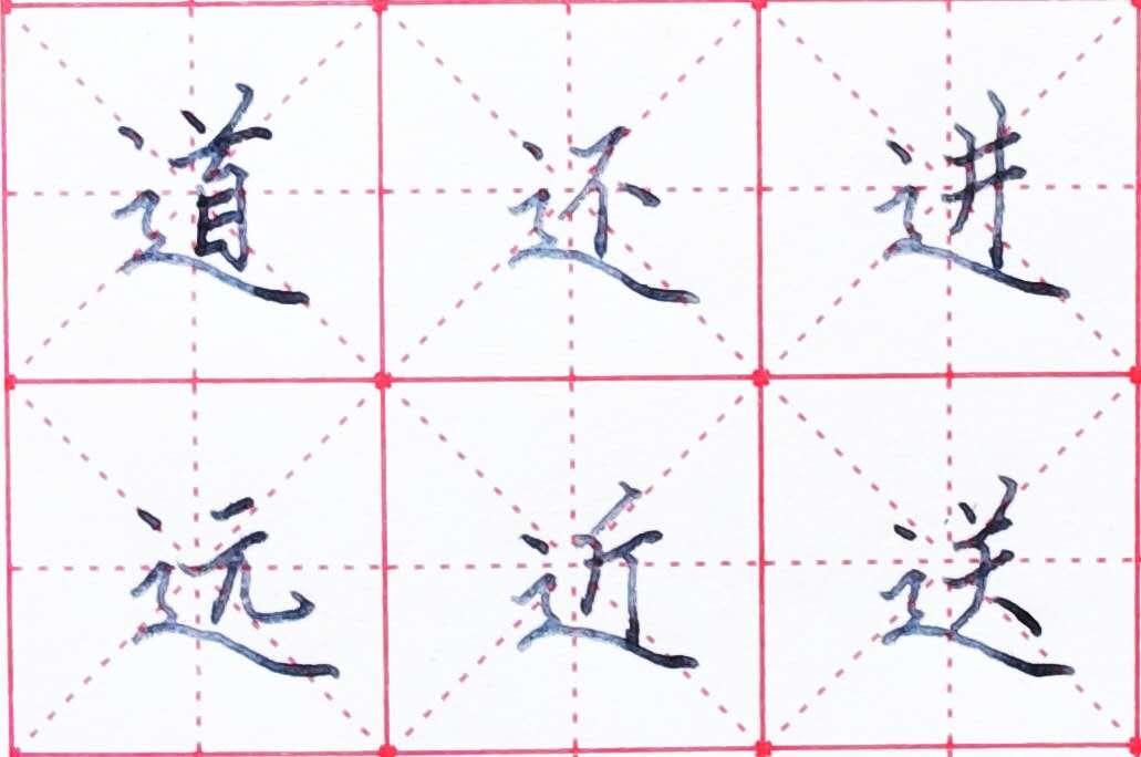 平捺的节奏为重-轻-重-轻,与正捺相似,多见于“走之底”,捺脚位置在走之底上边笔划整体结构的右侧为宜。