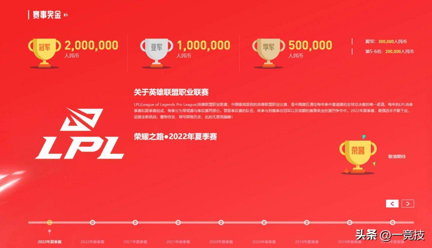 LPL夏季赛奖金池正式公布:冠军奖励200万、亚军100万,季军50万