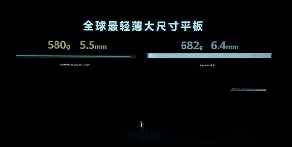 平板薄至 5.5mm、轻至 580g,三指即可轻松握持,这也是全球最薄无边大平板,比 iPad Pro 12.9 英寸更轻、更薄。