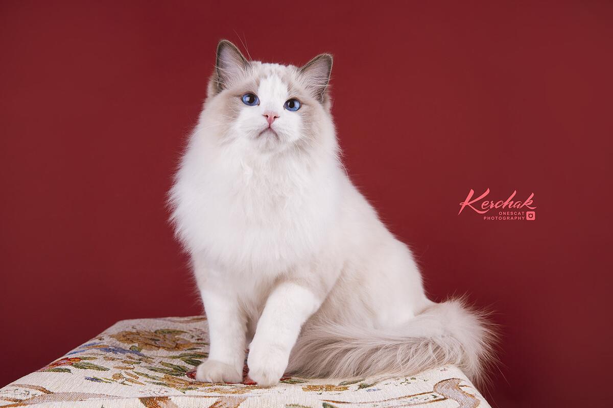 双色布偶猫是最受欢迎的品相,脸上的倒V字部分是白色的,越对称越好,四肢、胸部、腹部都是白色的,尾巴、耳朵的颜色较深。