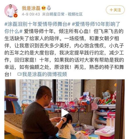 涂磊在五年前就与老婆“小丸子”走过“五年之约”,简单点讲,就是涂磊当时是跟老婆约定,为事业在奋斗5年,之后会将重心放在家庭中。