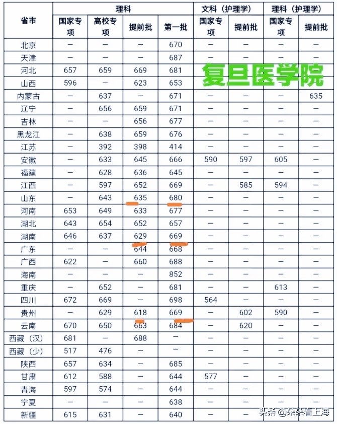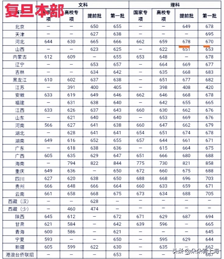 复旦大学2019年录取分数线,提前批和普通批之间有以下特点: