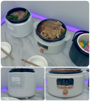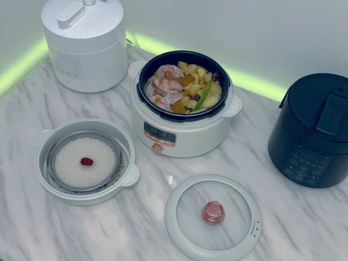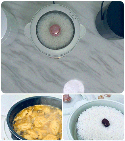 蒸锅模式可以实现“上蒸下煮”,一次同时搞定饭和菜,效率翻倍又省时省电。例如下面一边炖着咖喱鸡肉,上面一边蒸着米饭,不一会儿香味浓郁的咖喱鸡肉米饭就OK了。要是以前不得不两个锅分开做,现在一下子就能搞定了。