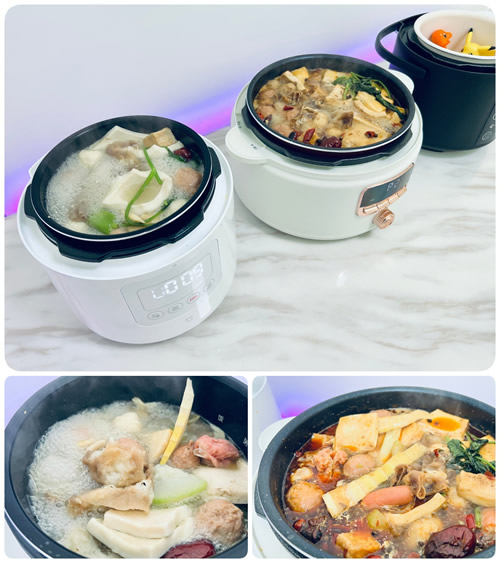 电压力锅则是将两者的功能都结合在一起了,安全的同时还能智能控火控压,甚至还能煮火锅,典型的“一锅多用”。