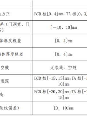 (2) 抹灰完成面垂直度:T、A 档次项目应≤3mm,B、C、D 档次项目按国家普通抹灰标准,偏差≤4mm;
