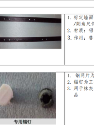 机械喷浆(抹灰)是利用机械(砂浆泵、搅拌机、空压机、输浆管、喷枪等)、将 CL30 砂浆在压力作用下喷射在墙面上,形成抹灰层;基于采用了仍以砂浆粘贴形式安装,适用在墙体及墙体各边角部位标定出抹灰基准的系列定位尺件,取代以砂浆灰饼或冲筋形式标定出抹灰。