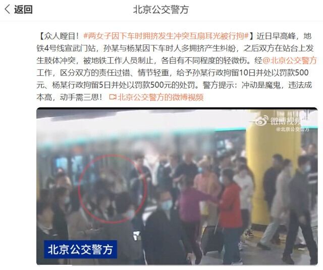 “北京地铁两女子下车后互扇耳光”,警方通报