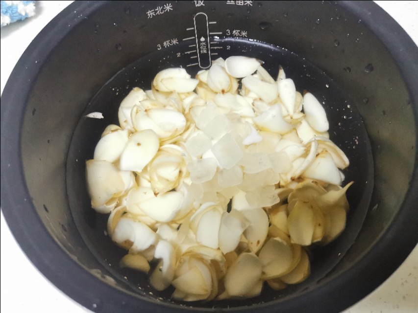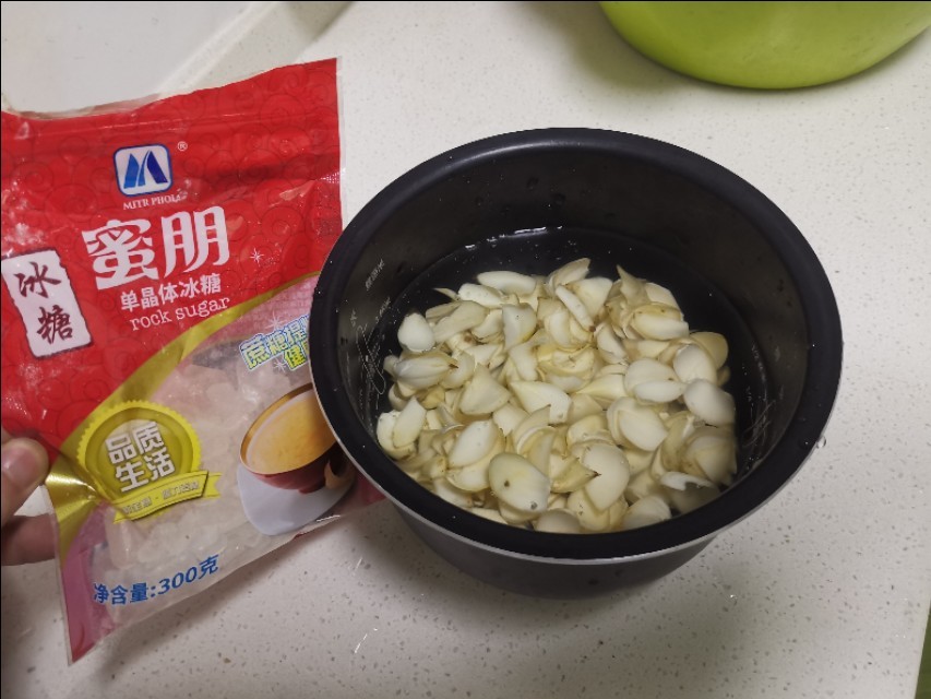 在电饭锅里放入适量冰糖,口感更加,个人可以根据自己喜好添加