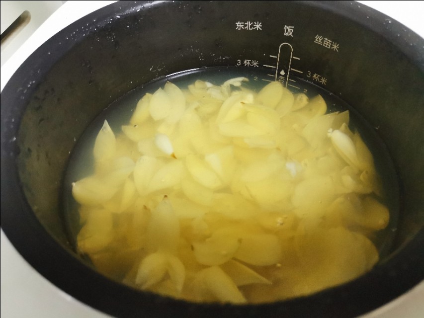 将鲜百合放入电饭锅(这里笔者用的是米家电饭锅)