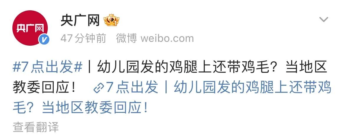央视报道!重庆幼儿园鸡腿带毛事件,官方回应来了!用词很妙!