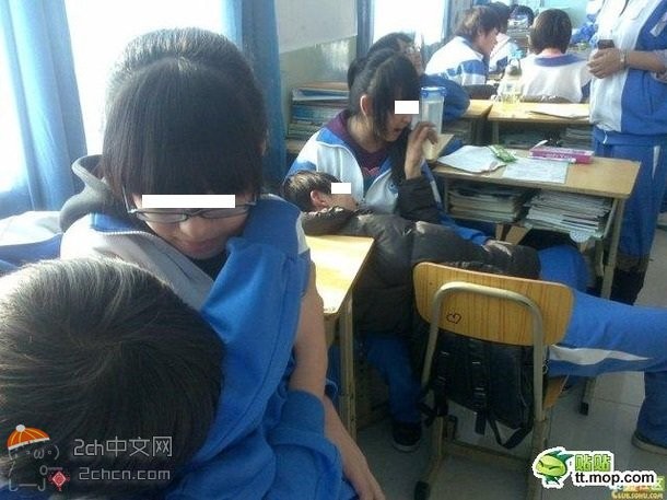 日本网民在网上上传照片称:中国的中学生太胡闹了。