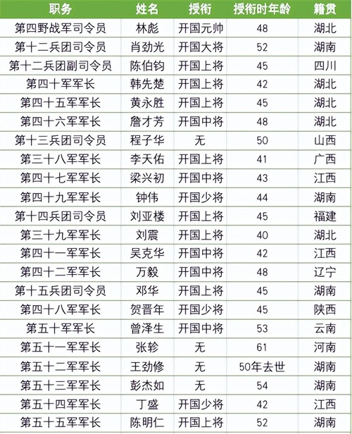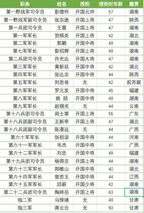 这些五大野战军主要将领,以湖南人和湖北人居多。