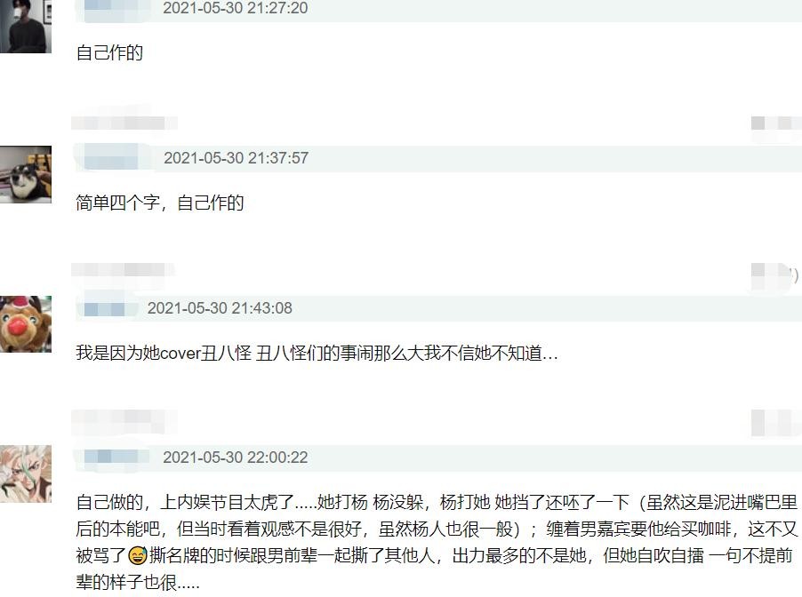 baby与宋雨琦矛盾爆发后,韩粉也是站队baby居多,认为宋雨琦被骂都是自己作的,在节目里用枕头打baby脸和吐口水,缠着男嘉宾买咖啡,撕名牌时抢占前辈功劳……虽然《奔兄》只是一个真人秀,宋雨琦的这些举动也不是什么大事,但细节见人品,坏印象就是这么累积起来的。