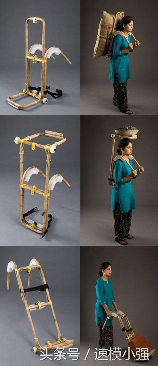 “Load Carrier for Labour”成为搬砖人士的福音。原料是质轻坚韧的竹子,设计上载重可以平摊在全身,肩上有软垫,底部有滑轮,重物可以头顶、肩背和手推。价格不到6刀(约40元)。